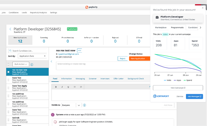 You’ll see at a glance the job sites you’ve posted it to, performance/data reporting, candidates that have applied, and more!