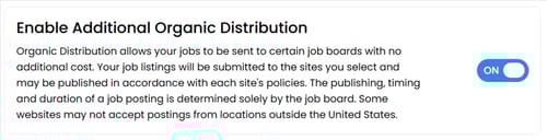 - Toggle the 'Enable Additional Organic Distribution' switch from 'OFF' to 'ON.'