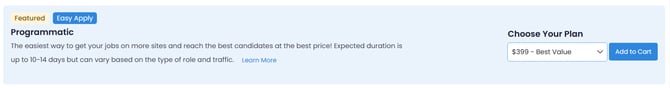 Programmatic can be purchased in the Marketplace as a one-time single-job posting, or as a monthly campaign for more flexibility and multi-job needs.