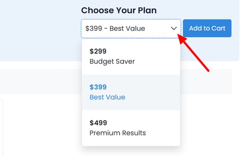- Click into the 'choose your plan' dropdown menu to select your budget.
