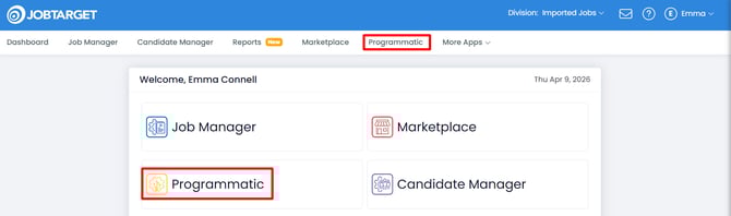 - Click 'Programmatic' in the JobTarget dashboard.