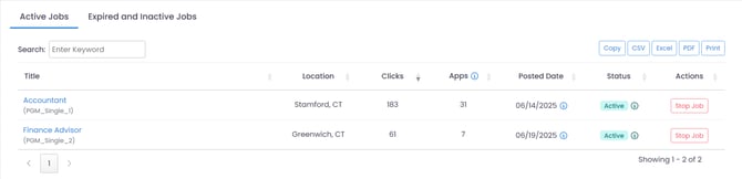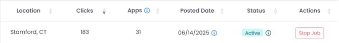 Clicks: The total cumulative number of clicks received across all active Programmatic Postings during the selected Date Range.