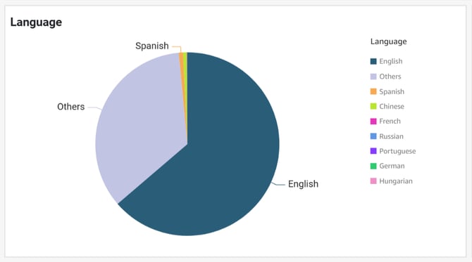 The third section of the Candidate Analysis report is the Language Chart, a pie chart breaking down the known languages of the job seekers who interacted with a job during the selected time frame.