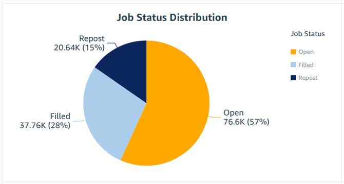 The Job Status Distribution is a pie chart breaking down the job statuses of the relevant postings within your selected date range. The three job statuses are: