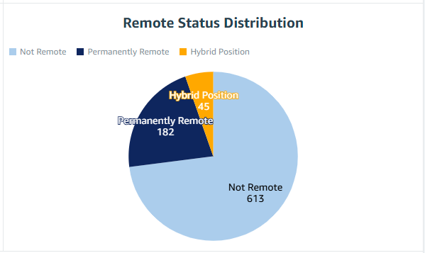 The Remote Status Distribution is a pie chart breaking down the remote status of the relevant postings within your selected date range. The three remote statuses are: