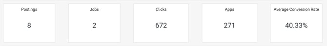 The first section of these reports show metrics and data for advertised jobs within your and Date Range and applied filters.