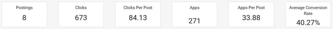 The Average conversion rate (click-to-apply ratio) across all advertised jobs within the selected date range and matching any applied filters. |
