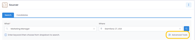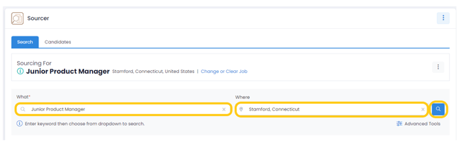 Once you select a job, the job title and location will automatically populate in the Sourcer search fields. Simply click on the search icon to generate relevant candidates.
