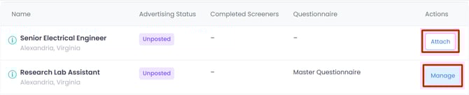 💡Best Practice: Add the questionnaire to the job prior to advertising.