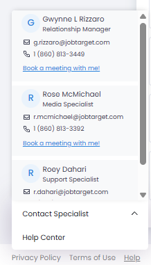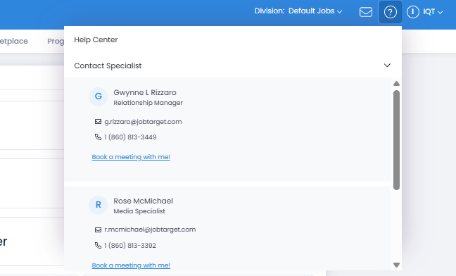 You can easily find the contact information for your dedicated points of contact when logged into the JobTarget platform.